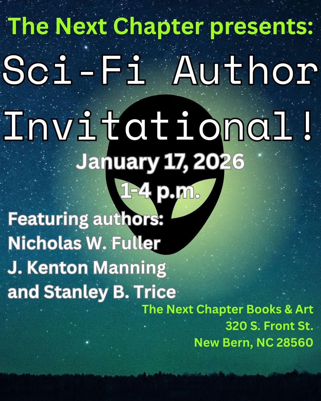 January 17 1-4 p.m. Sci-Fi Author Invitational. Featuring authors Nicholas W. Fuller, J. Kenton Manning, and Stanley B. Trice!